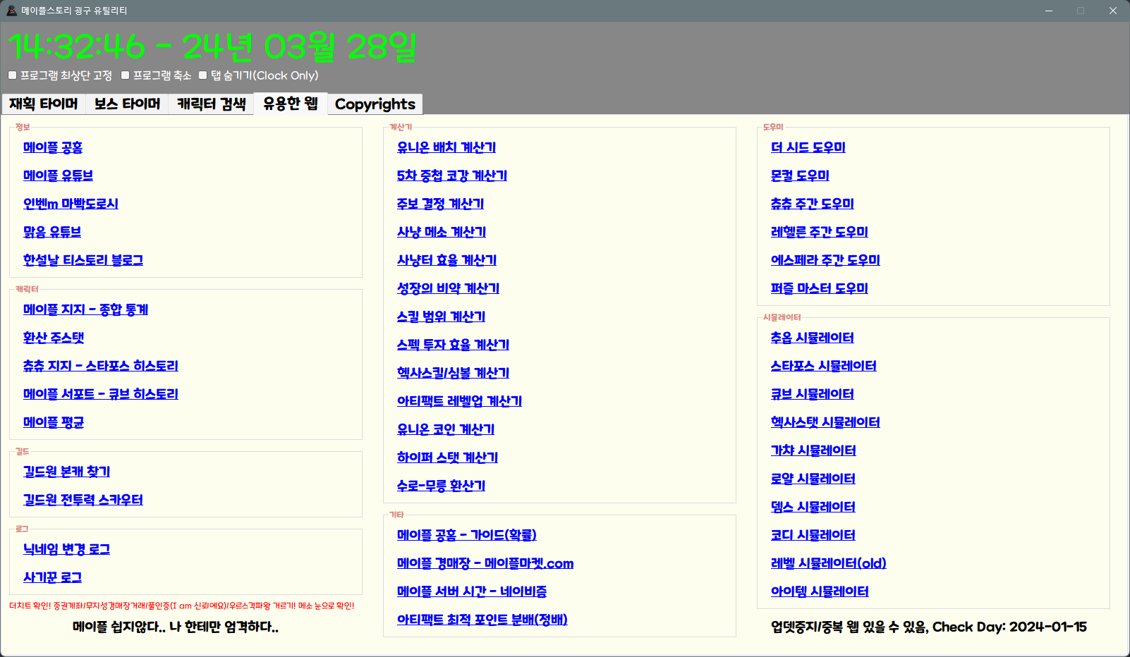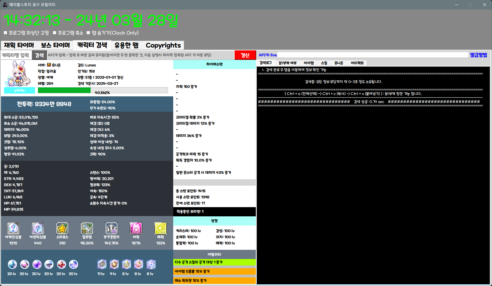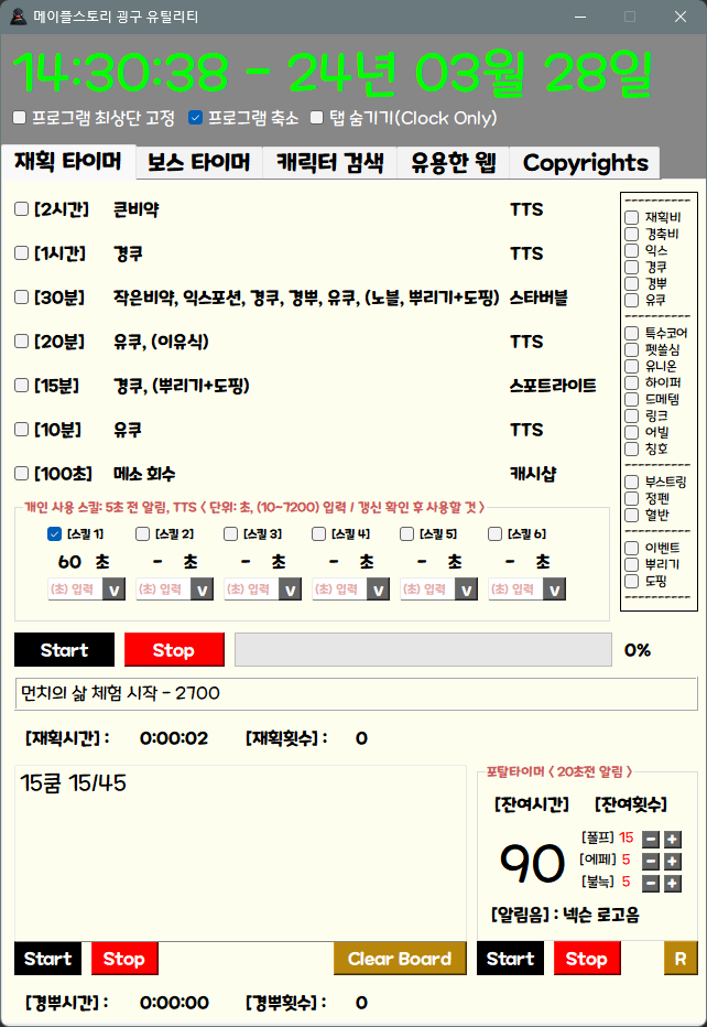 - 메이플스토리 재획 타이머 (굉구 유틸리티) 2024.06.11